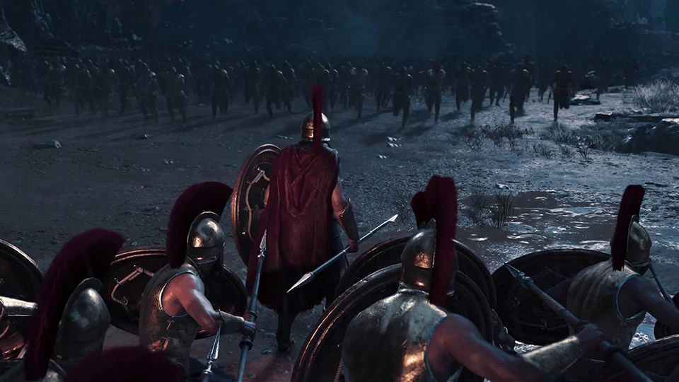 During this scene you can see the armor of the soldiers, the formation of the soldiers (spartans defending with shields), as well as the surrounding environment. All of these seem to be historically accurate as well. the only inconsistency i noticed was the lack of Greek soldiers behind the spartans. Although, the developers did include Leonidas, which was pretty cool.